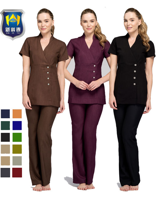 - We are offering all the categories of the spa/salon uniforms such as TUNICS & TOPS DRESS, SHIRTS, TROUSERS, PAJAMAS, HAIR CUTTING SHEET & CAPE, GOWN, SLIMMING GOWN, BLAZERS & JACKETS, SALON APRON.